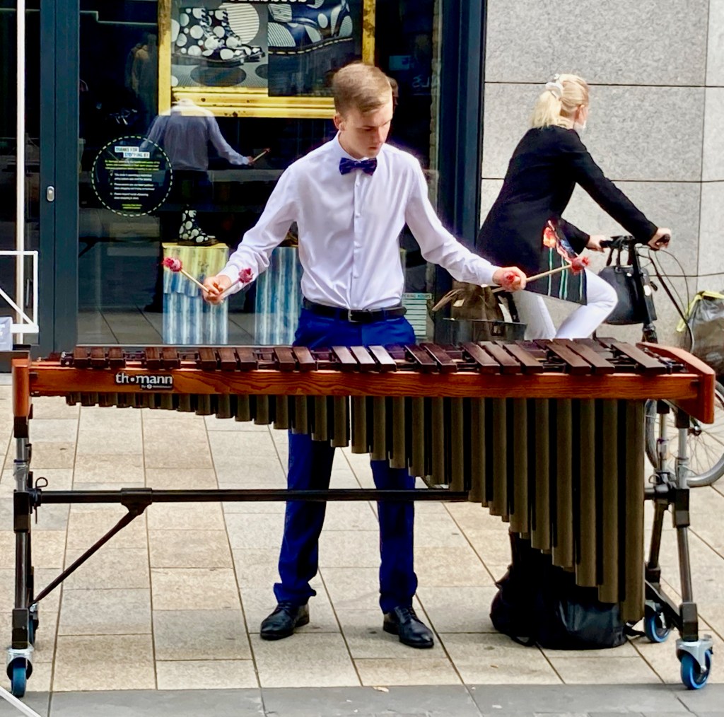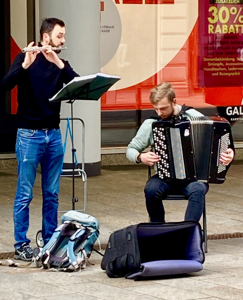 The street musicians in Leipzig are different from other towns. Not only do they play classical music some of them are also much better dressed.